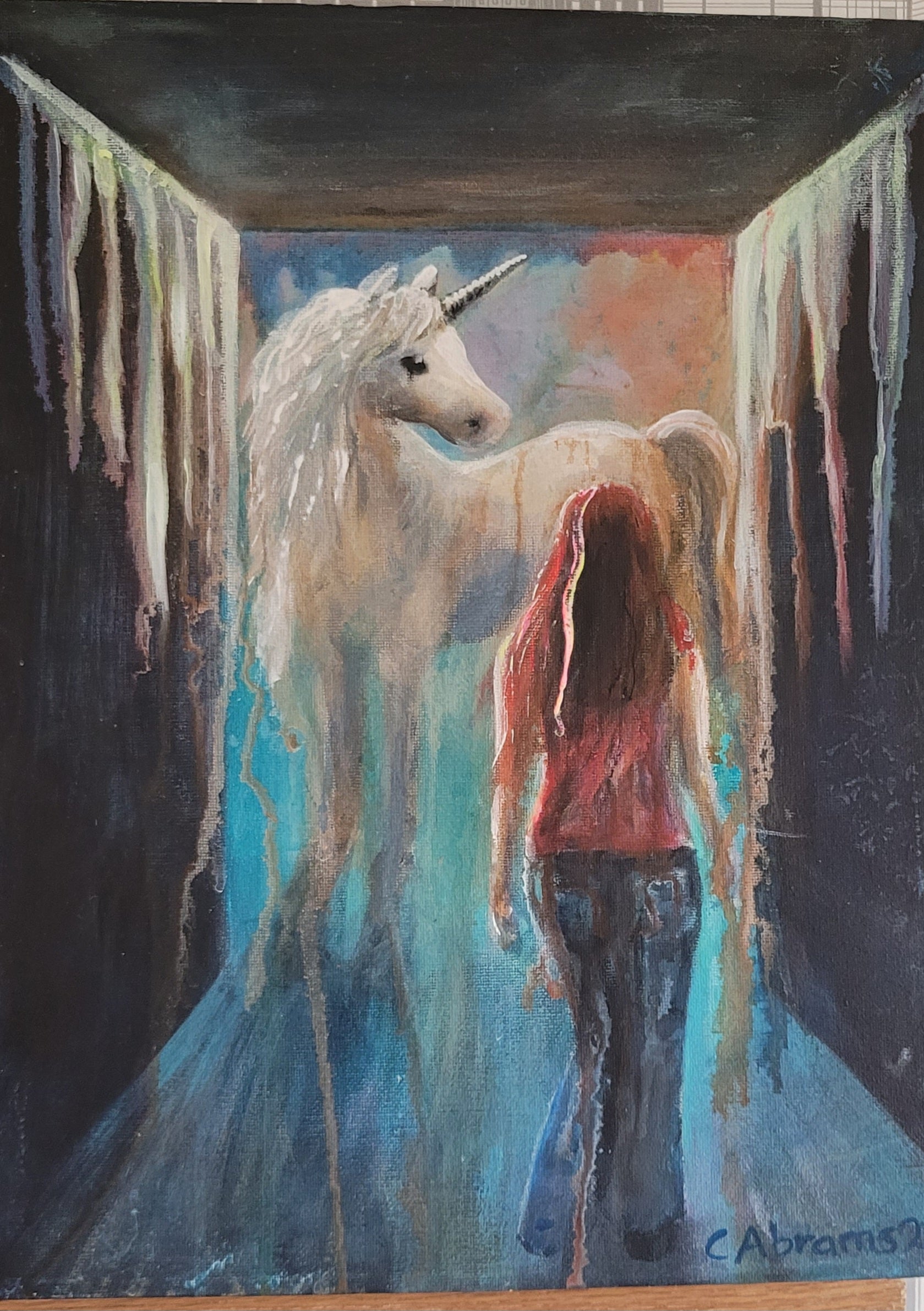 Magical Unicorn. Original artwork. Acrylic painting on deep edge canvas. Drip painting.